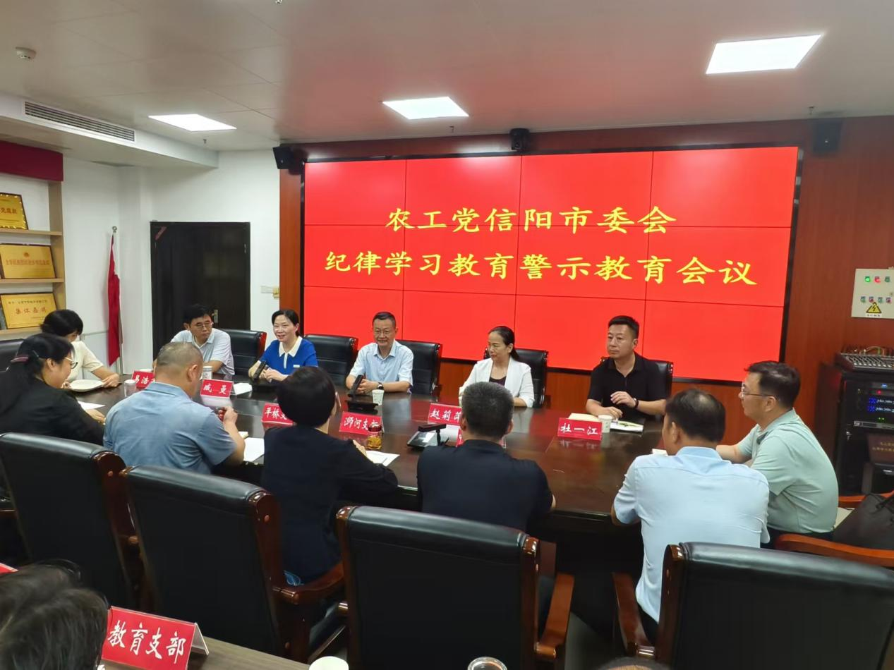 8月26日,农工党信阳市委会召开纪律学习教育警示教育会议,农工党河南省委会副主委、河南科技大学副校长张小安到会开展集体谈心谈话。农工党河南省委会组宣处处长、一级调研员赵莉萍应邀到会指导,农工党信阳市委会专职副主委杜一江,副主委易浩宇,市委会委员、各支部负责人和部分骨干党员参加会议。农工党信阳市委会主委、市科协主席臧曼主持会议。