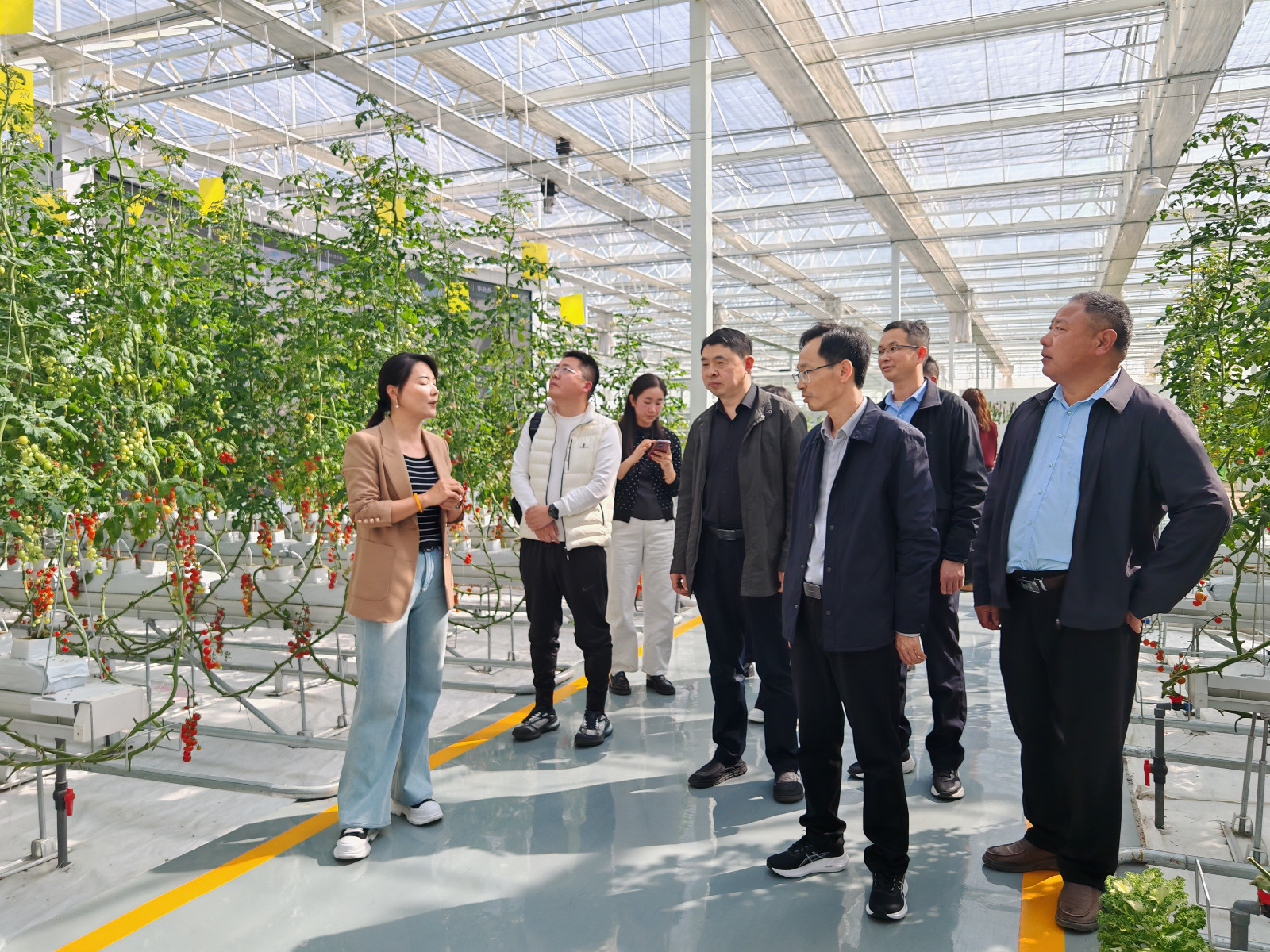 市知联会一行深入产业园核心区域,实地考察了智能温室大棚,会员们认真听取了园区在“六统一分”标准化管理模式、特色种植、研学科普等方面的介绍,详细了解了新品种引进、水肥一体化管理、市场销售渠道以及联农带农机制运行情况,并结合自身专业,围绕种苗繁育技术升级、智慧农业管理系统优化等具体问题,从产业园的生产管理、品种选育、品牌营销、政策对接等角度提出了兼具科学性、实操性的建议。