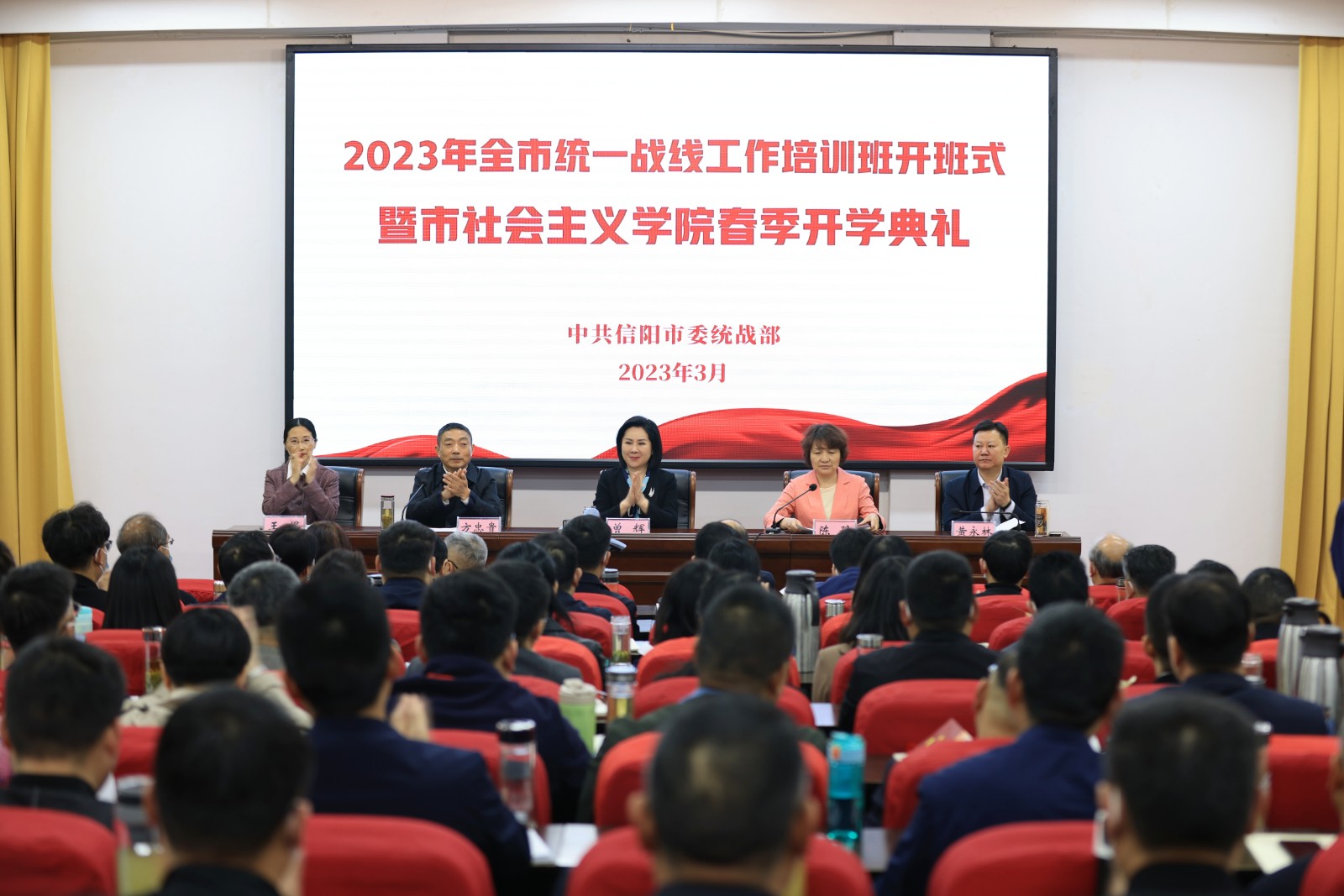 3月15日,2023年全市统一战线工作培训班暨市社会主义学院春季开学典礼在市委党校举行。市委常委、统战部部长曾辉出席开班仪式并作授课辅导。市领导周保林、陈豫、周刚、贾作平出席。