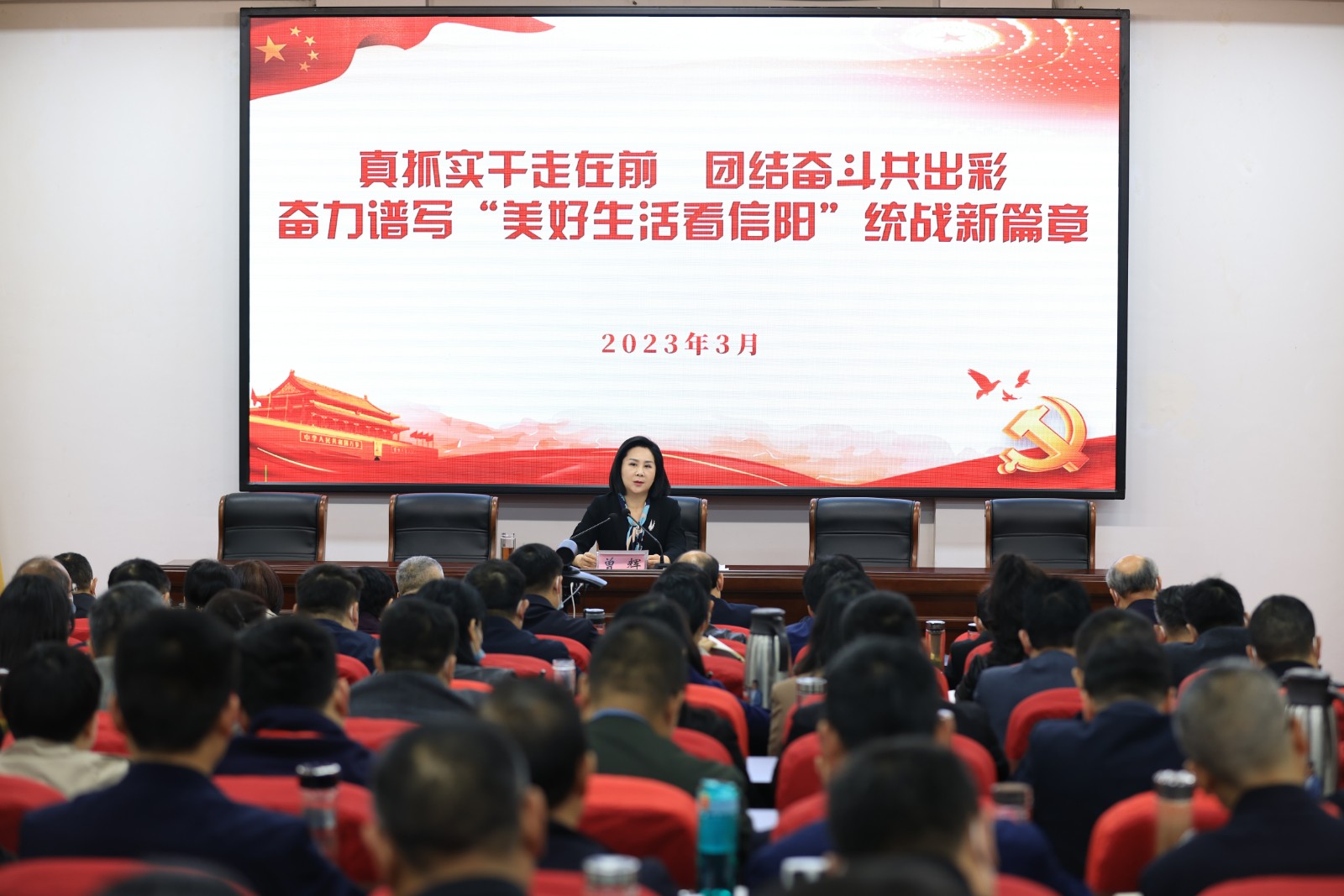 曾辉强调,做好新时代全市统战工作,要坚持以习近平总书记关于做好新时代党的统一战线工作的重要思想为指导,深入学习贯彻党的二十大精神,全面落实中央、省委统战工作会议部署,聚焦市委“1335”工作布局,持续实施“11374”工作思路,即:围绕学习宣传贯彻党的二十大精神这条主线,创造性推动习近平总书记关于做好新时代党的统一战线工作重要思想落地见效;健全市县乡村四级贯通的全域统战工作网络,推动统战工作有机融入党建引领社会治理;深入实施“三大行动”,突出目标导向、问题导向、结果导向,做实大培训,做深大排查,做优大服务;大力推进“七个重大专项”;实施“四大同心”行动,擦亮“和合统战”“经济统战”“文化统战”“基层统战”四个统战品牌,以更加饱满的热情、更加昂扬的斗志奋力开创工作新局面,共同谱写“美好生活看信阳”统战新篇章。