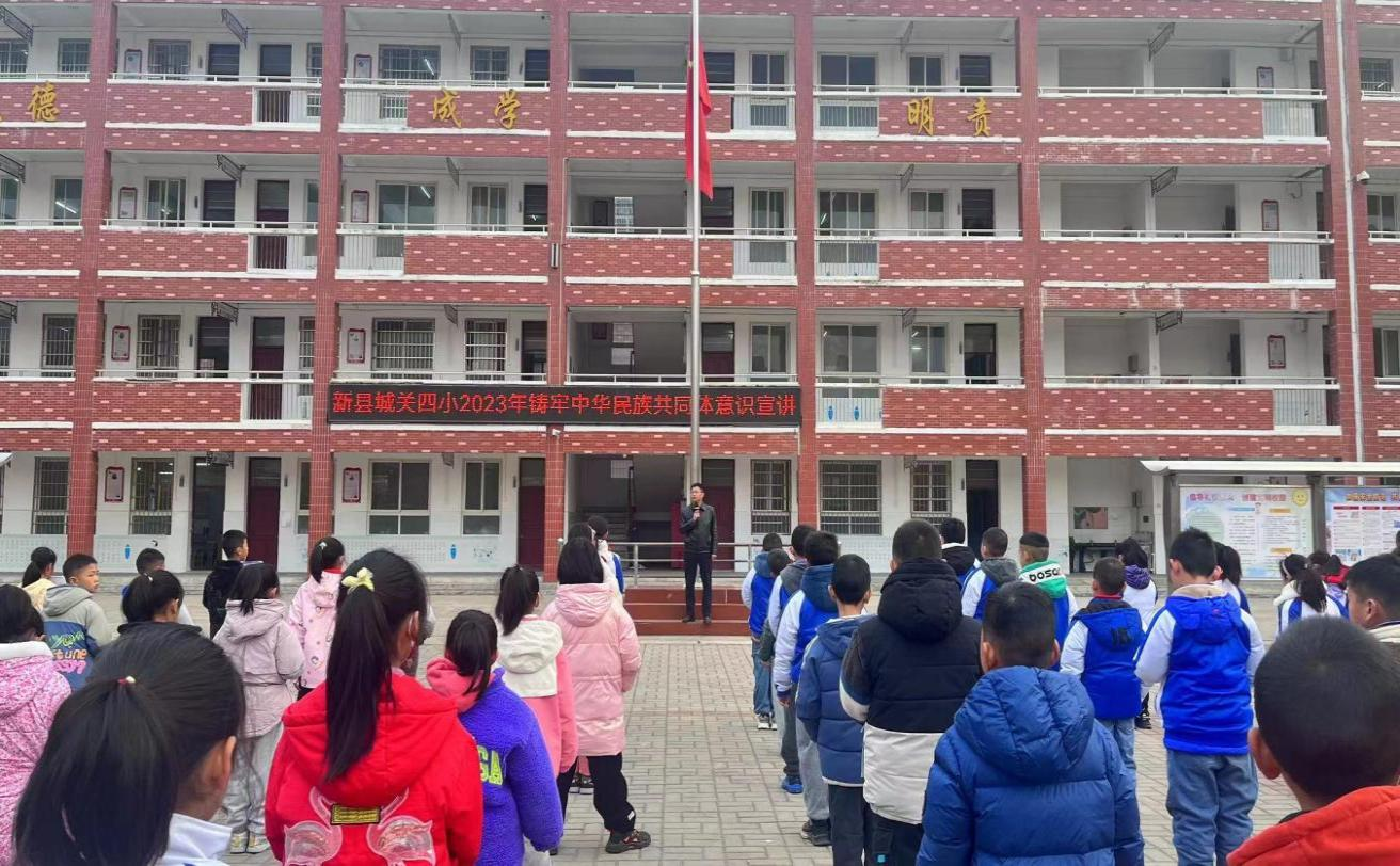 新县第四小学、新星小学;第二、第三初级中学;第一高级中学等先后结合升国旗仪式开展铸牢中华民族共同体意识教育,学生代表精彩诵读了《我为祖国而骄傲》、《满江红》等文章,学校校长就铸牢中华民族共同体意识理念亲自作宣讲。