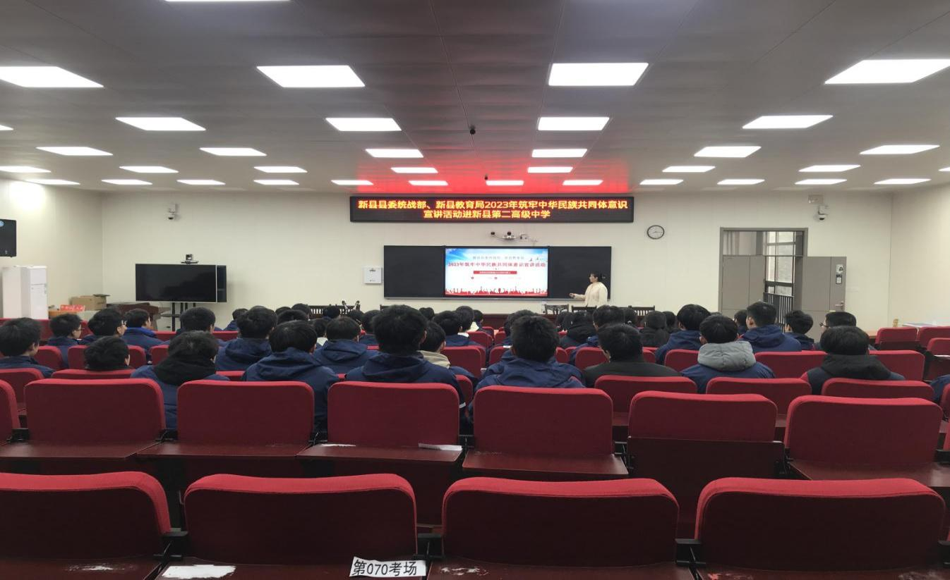 新县第二高级中学邀请县委统战部和党校相关专家学者到学校为全校师生讲述了一堂以《我爱我的祖国》为题的铸牢中华民族共同体意识专题辅导课。同学们认真聆听党的革命历史故事、党的民族工作故事,把爱我中华的种子埋进心灵深处。