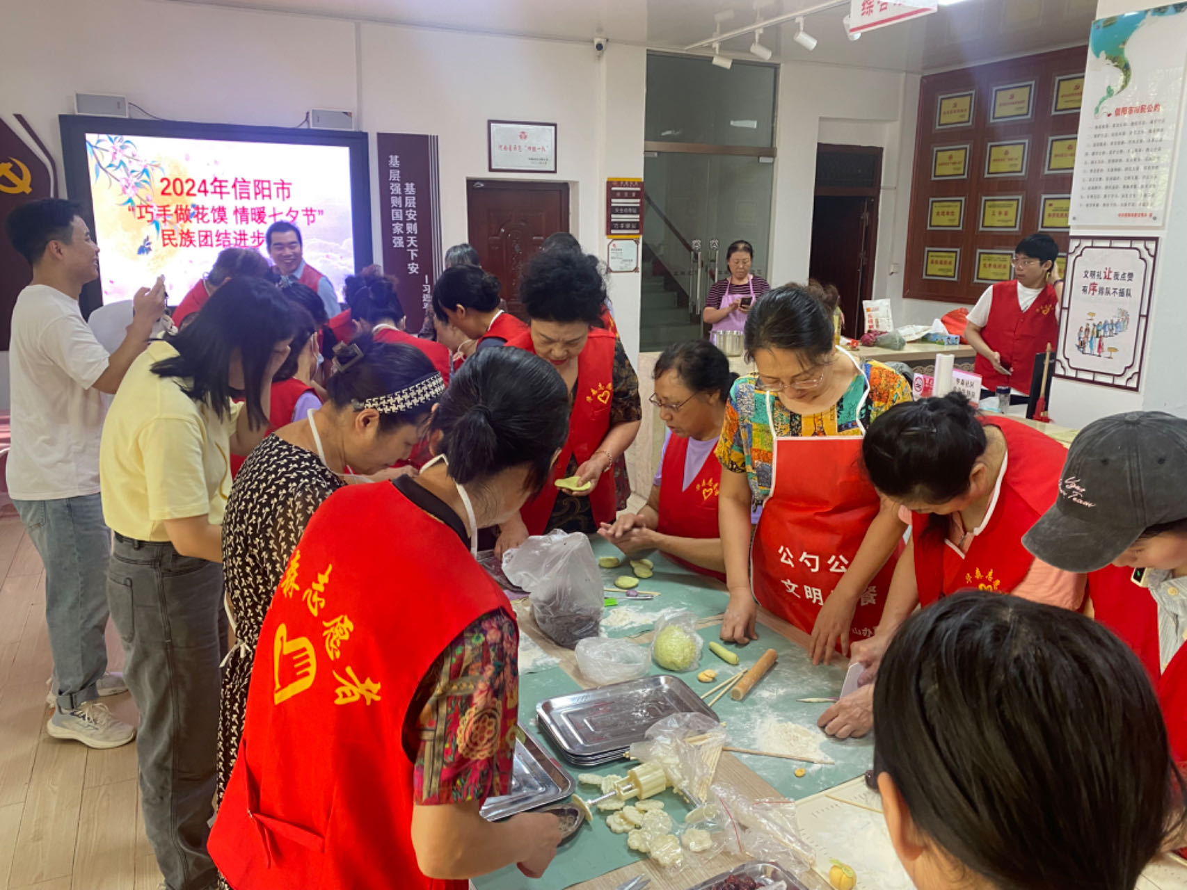 为进一步铸牢中华民族共同体意识,更好地弘扬传承民俗文化,丰富辖区居民精神文化生活,8月9日上午,信阳市民族宗教局到金牛山办事处华森社区开展“巧手做花馍 情暖七夕节”活动。