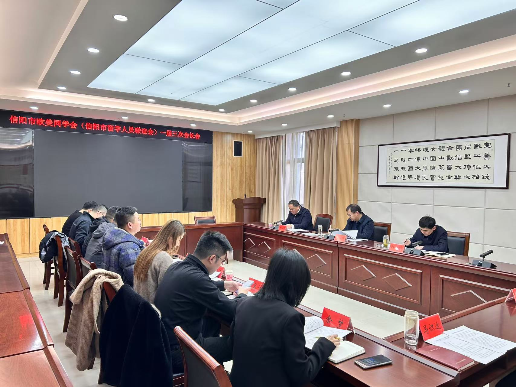 12月3日,信阳市欧美同学会(信阳市留学人员联谊会)召开一届三次会长会,深入学习贯彻党的二十届三中全会精神,传达学习中共中央党外人士座谈会精神,研究部署探索留学生创业园建设等工作任务。市欧美同学会班子成员、秘书长、副秘书长参加会议。
