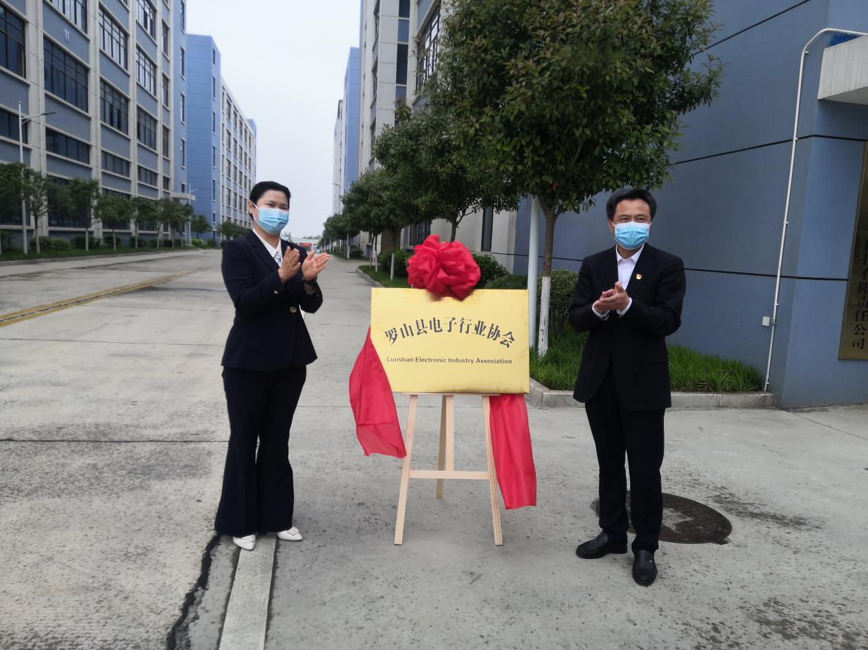 4月28日,罗山县电子行业协会揭牌成立,县委书记周哲、县长余国芳共同为“罗山县电子行业协会”揭牌。