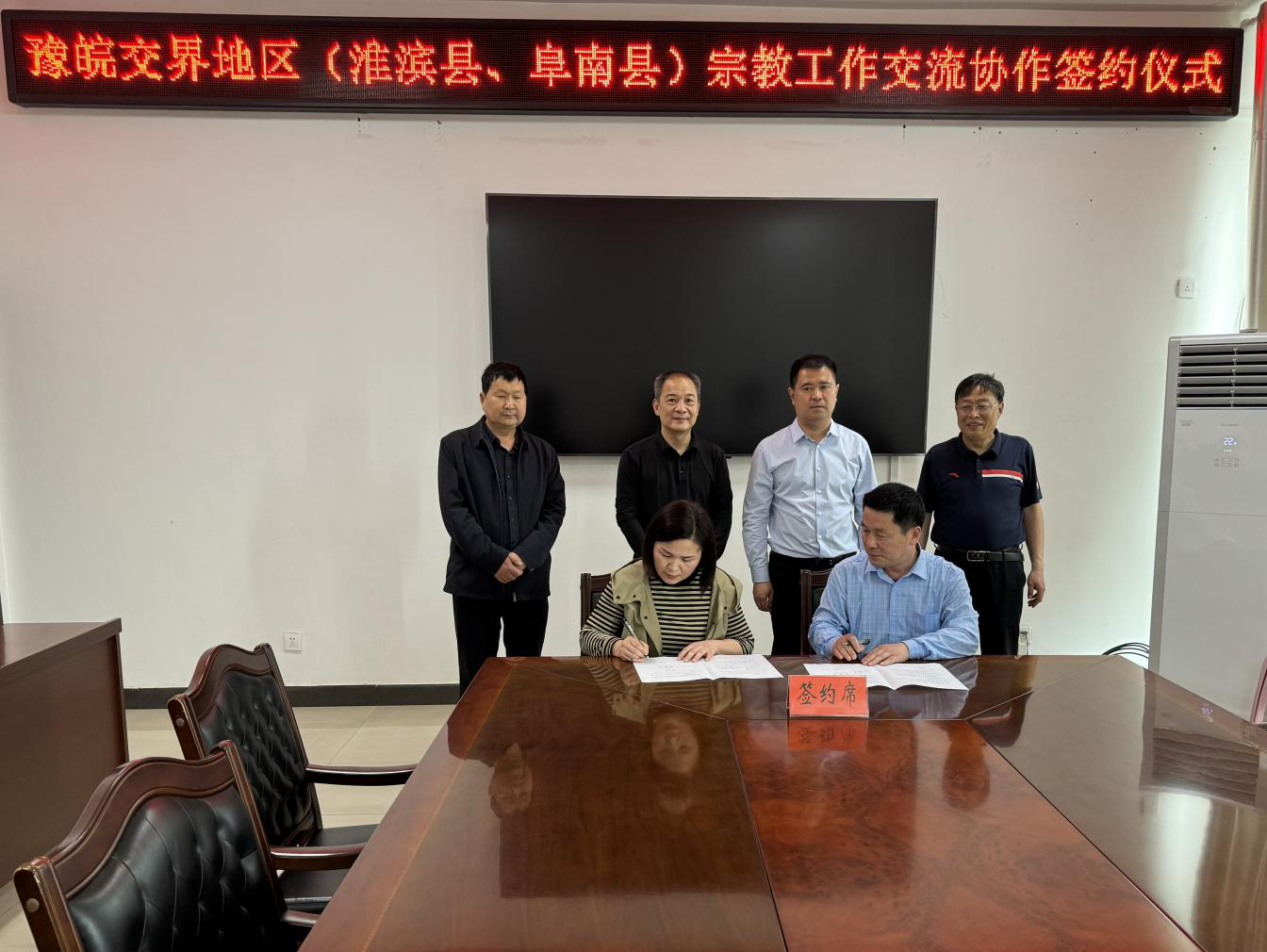 李祎楠一行观摩了淮滨城市会客厅和信商之家∙淮滨服务中心,考察了淮滨县新时代乡贤联合会、信阳港∙淮滨中心港、苏州纺织产业园、淮滨县宗教管理大数据指挥中心等地。两地还就加强省际交界地区宗教工作的交流合作与联防联治,共同签署了《豫皖交界地区(淮滨县、阜南县)宗教工作交流协作机制协议》。